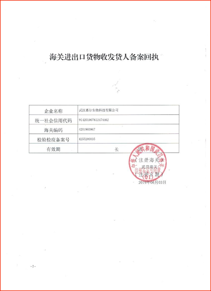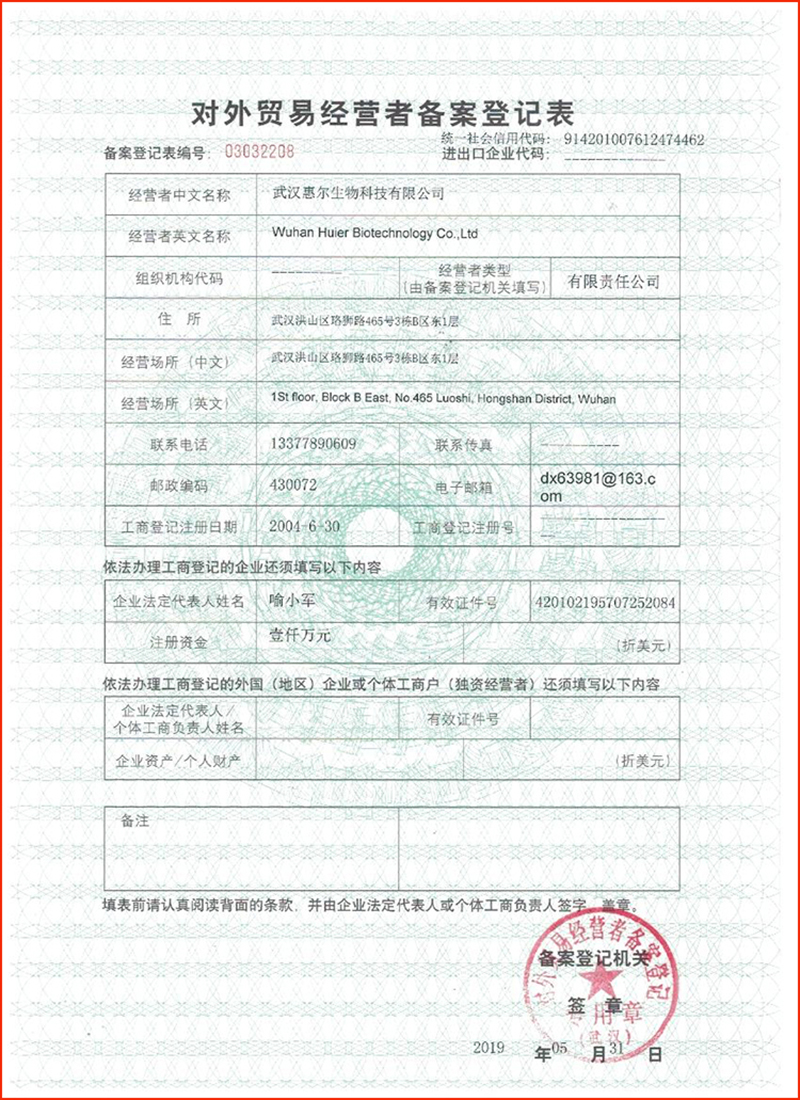 惠尔生物取得进出口贸易资质