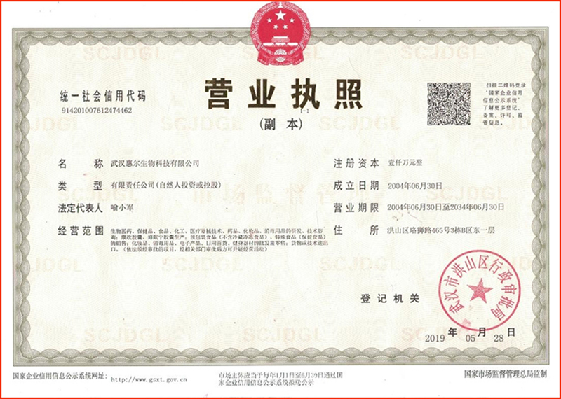 5月28日,到武汉市洪山区行政审批局申请增加“货物或进出口贸易”的经营范围,取得了核发的新版《营业执照》。